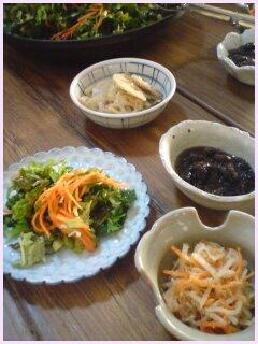 夕食はサラダに加熱した野菜料理、スープでしょうか。