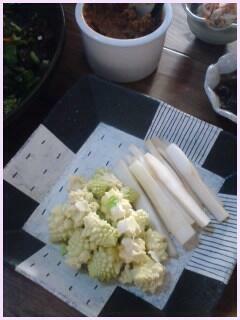 でも私は、畑で夫が作ってくれた、多種類の野菜のサラダ(近所に畑を借り、3